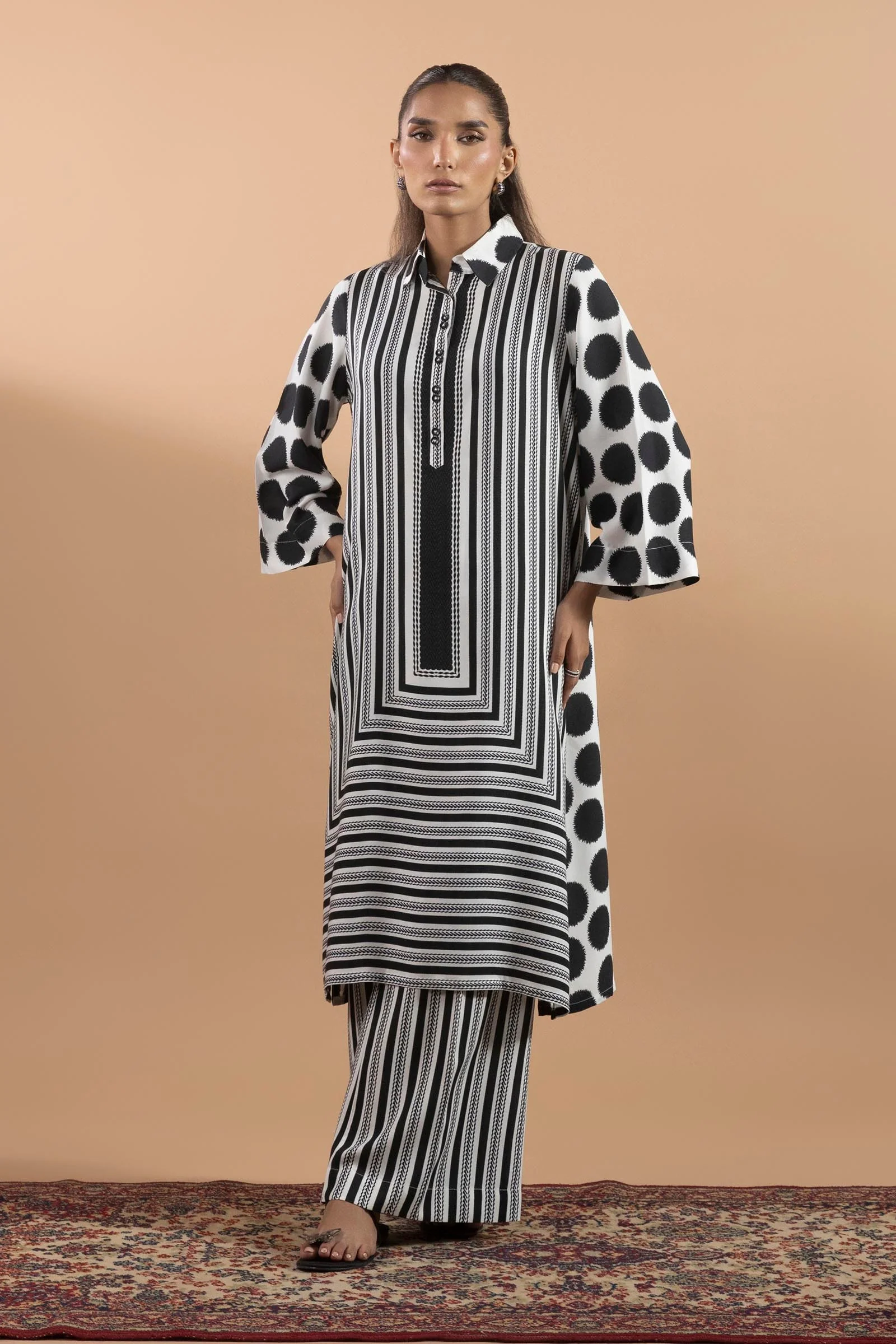 “Simplicity is the ultimate sophistication — and the Sana Safinaz Khan Design SS25BSP153P2T proves it through refined geometry and timeless monochrome.”
